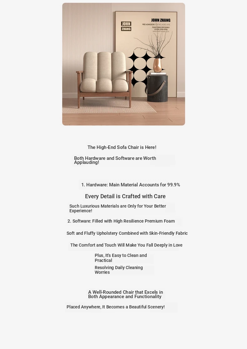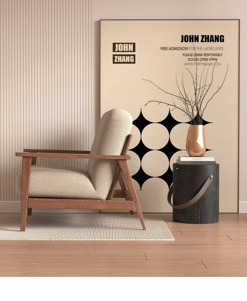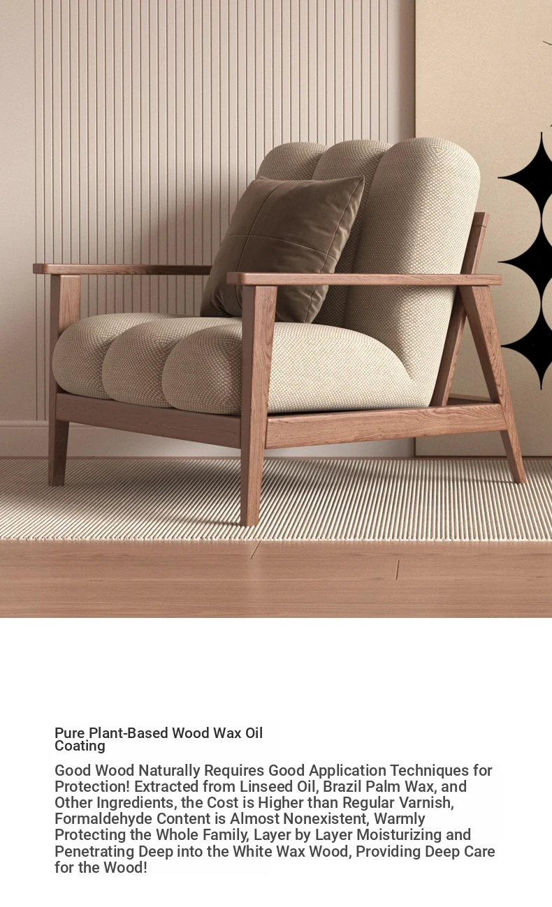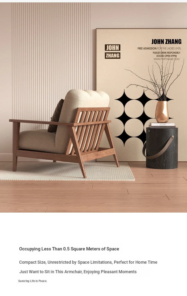 Wabi-Sabi Style Solid Wood Single Sofa - Designer Creative Lounge Chair for Modern Nordic Minimalist Interiors, Perfect for Relaxation and Aesthetic Appeal